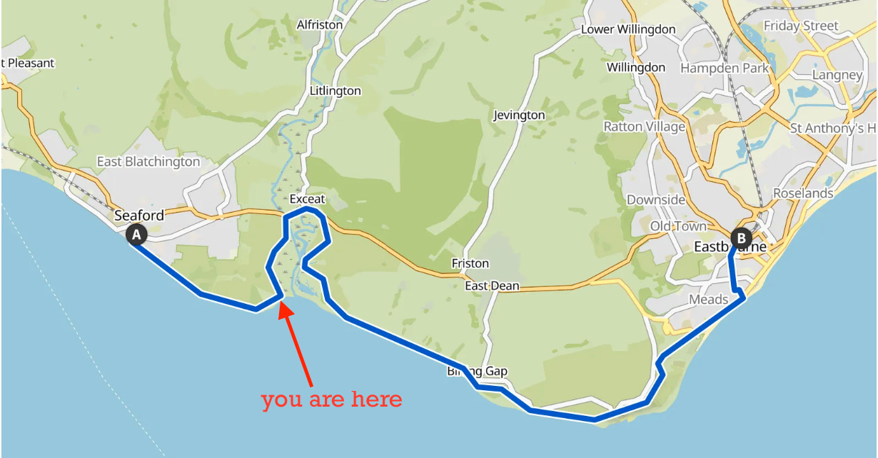 If you want the wind behind your back and you’re walking in an easterly direction (Brighton to Eastbourne), surely it’s a westerly wind you’re seeking?