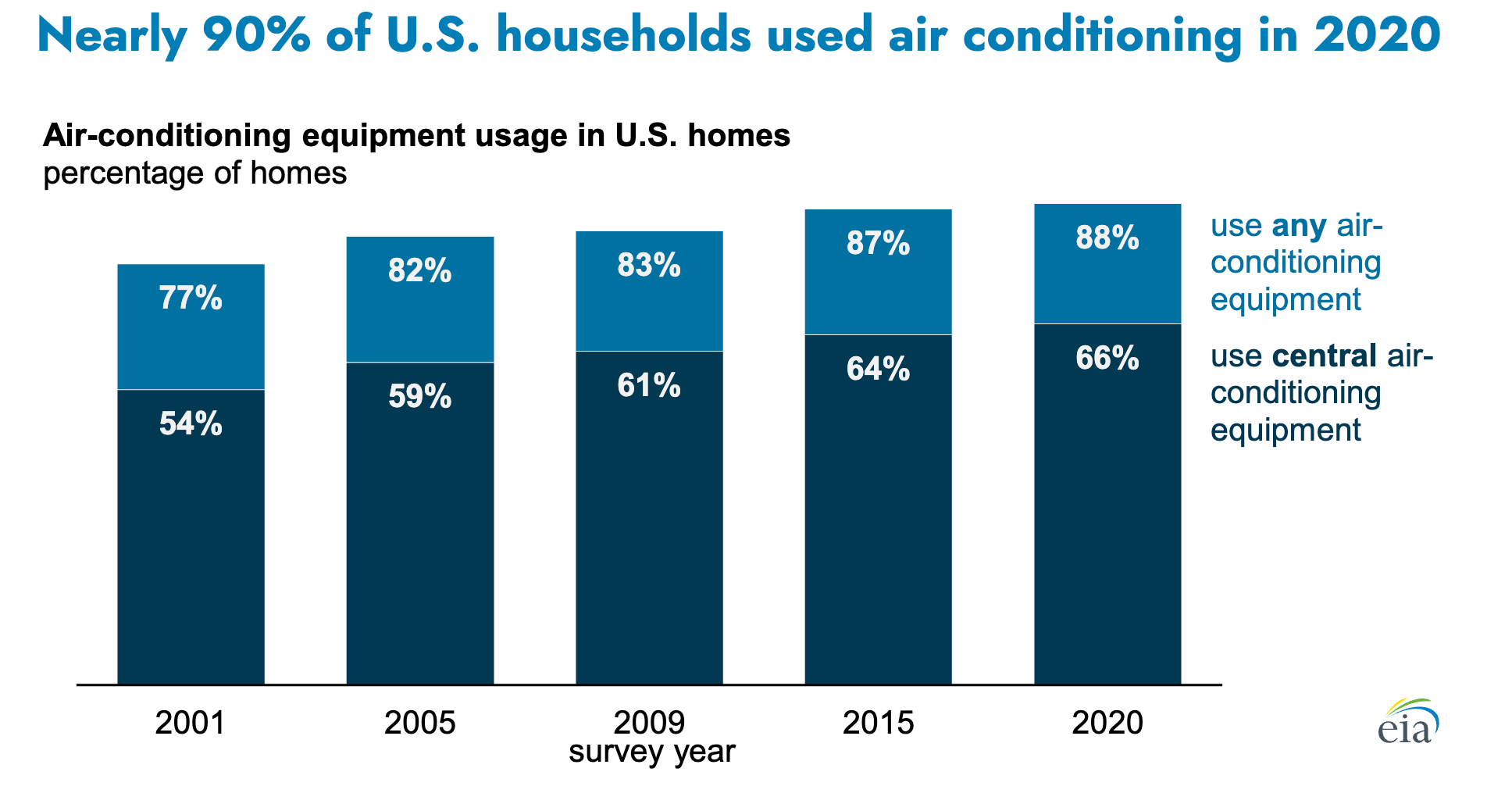 Anything can be a culture war issue. Healthcare, censorship, even Cracker Barrel’s new logo design3. AC is no different. Opposition to the technology seems reasonable when taken at face value: AC requires lots of energy, carbon emissions are driving climate change, and so you risk entering a vicious cycle in which more AC units produce more emissions and so on. But this isn’t right.