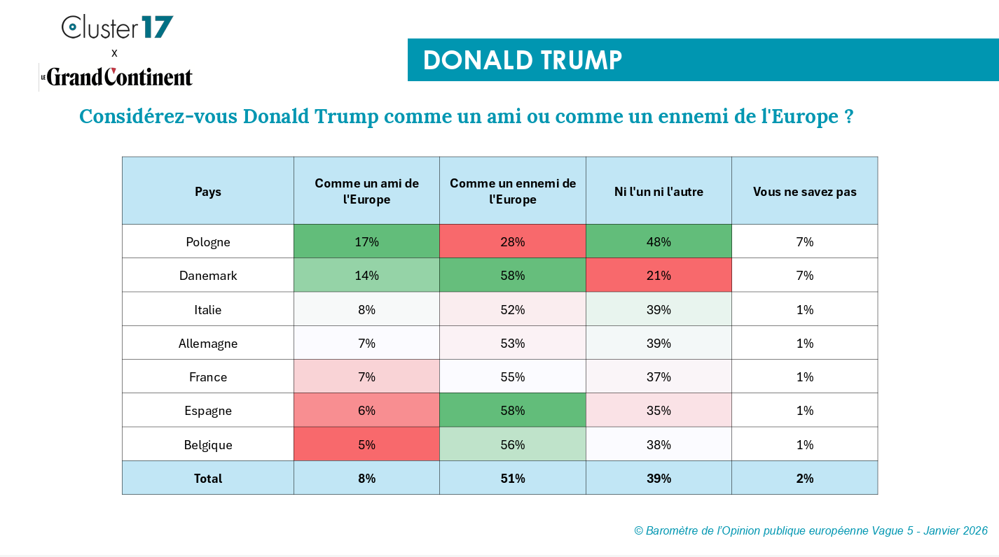 Notably, European citizens have woken up. A poll last month for Le Grand Continent, a French journal, found that 51% of respondents across seven European nations1 said Trump was an enemy of Europe, with 8% calling him a friend.