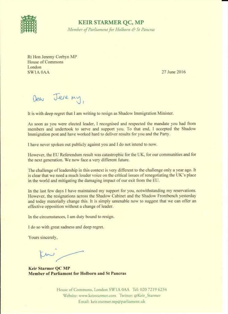 It is demonstrably false to assert that Starmer lacks political judgement. As a new MP, he identified that the next Labour leader would have to come from within Jeremy Corbyn’s shadow cabinet. And so — even though Starmer did resign as a shadow minister as part of the mass resignations following the EU referendum — it was one of those ‘in sorrow rather than anger’ letters.