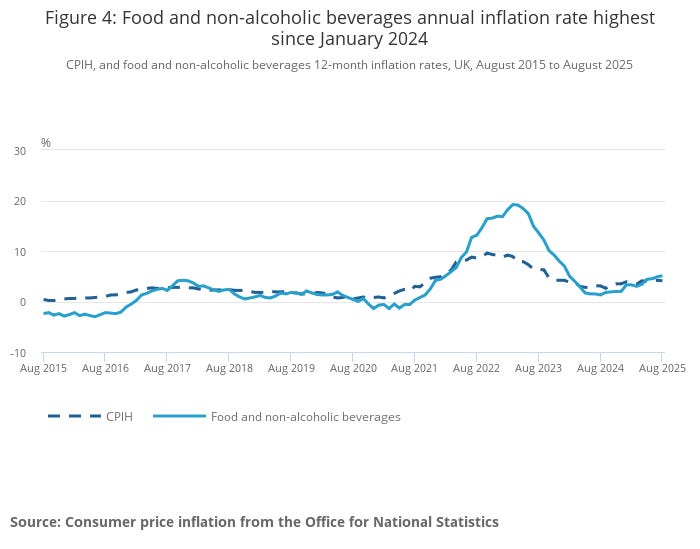 Then came yesterday’s inflation figures from the Office for National Statistics, which showed the figure holding steady at 3.8%, driven in large part by a 5.1% rise in food costs — the fastest jump since the start of last year. The Bank of England has forecast that inflation will peak at 4% this autumn, which is double the 2% target as well as almost twice the rate in the eurozone.