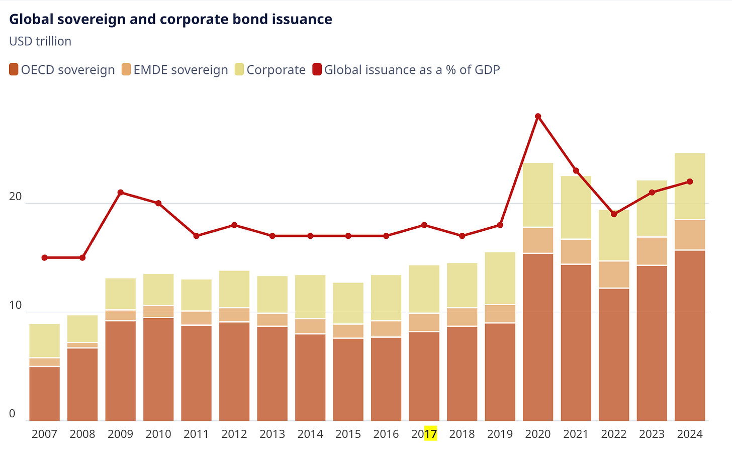 There is also an international component. The UK government is not the only one out there looking to borrow money. A recent OECD report on government debt estimates that sovereign bond issuances by member states will rise to $17 trillion this year, up from $14 trillion in 2023. Throw in Donald Trump’s threats to Federal Reserve independence, reduced demand from defined benefit pension funds and the Bank of England’s sale of gilts and it’s something of a perfect storm.