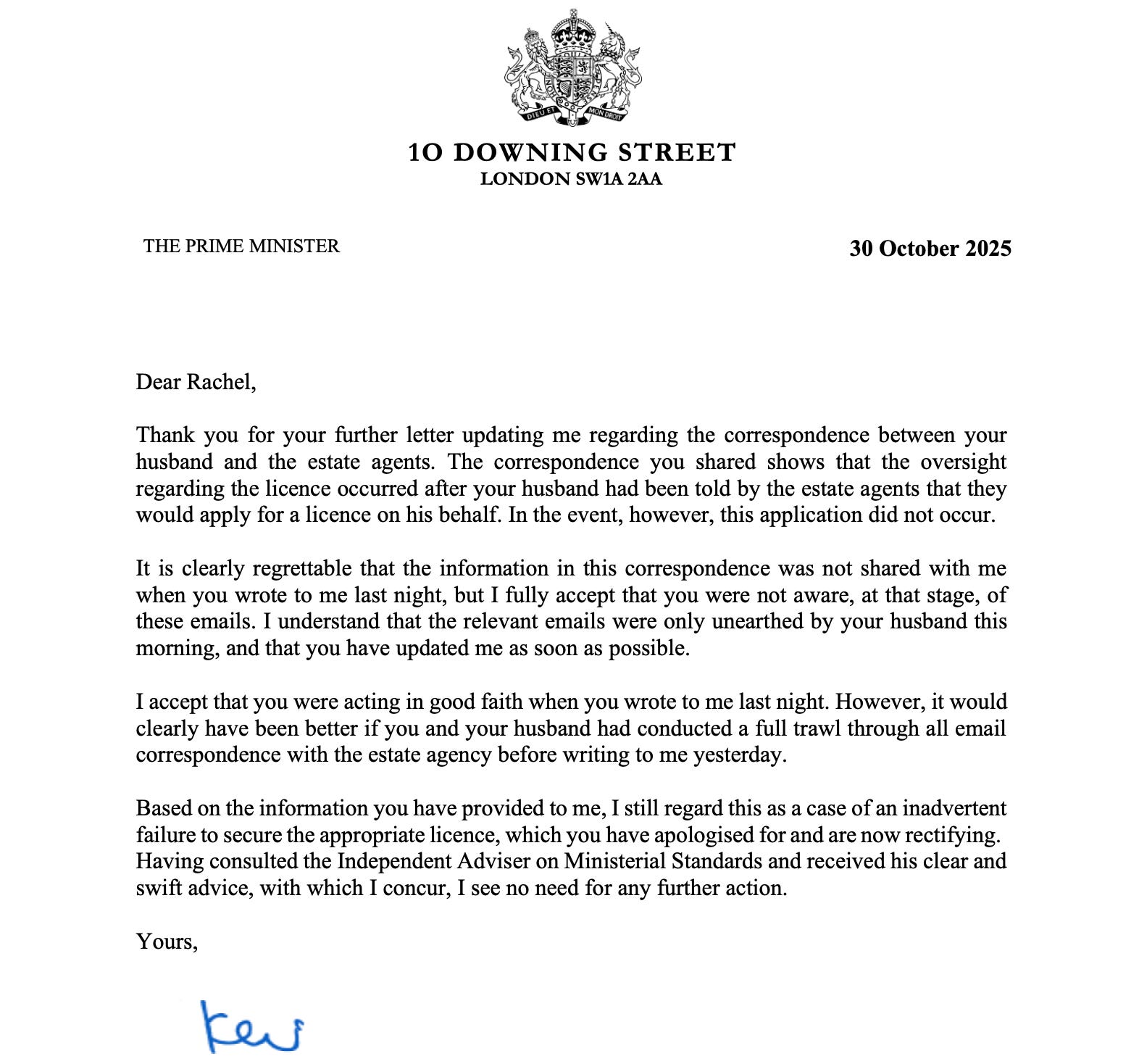 Having reviewed the email correspondence, the prime minister’s ethics adviser, Sir Laurie Magnus, said last night that he “remains of the view that this was an unfortunate but inadvertent error” and found “no evidence of bad faith”. Keir Starmer himself has also given Reeves a pass.