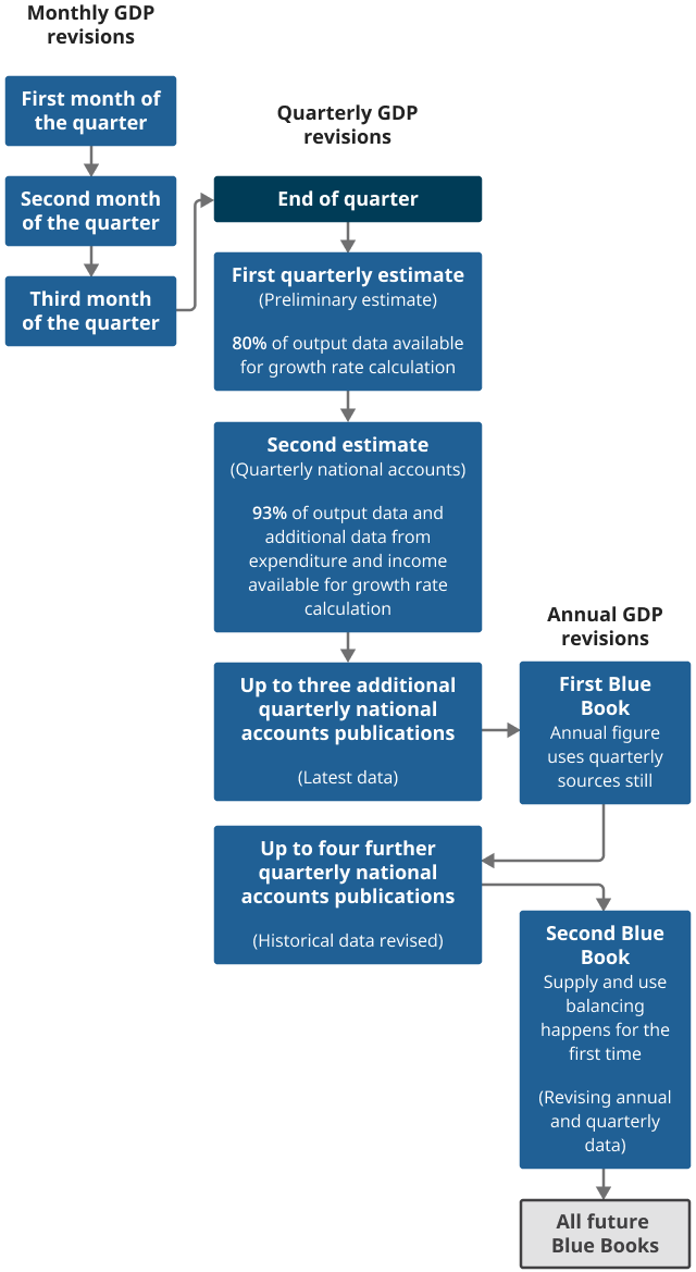 Furthermore, there is a reason why the ONS calls its GDP monthly figures an ‘estimate’ — they are subject to revision. The UK economy is large and contains multitudes! See below for the ONS’s process.