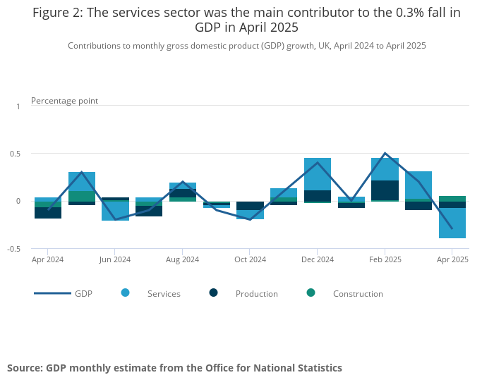 I was reminded of this when various media outlets breathlessly reported that the UK economy had shrunk by 0.3% in April. Clearly, this represented both bad news and even worse timing for Rachel Reeves, coming straight after the Spending Review. But it is also deeply unhelpful to suggest this portends something of a crisis. Consider the following: