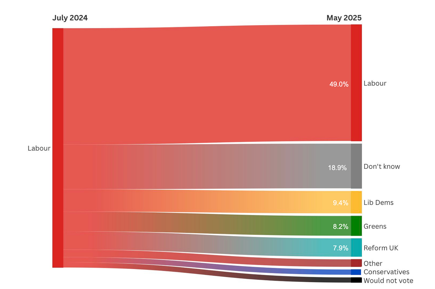 The question today isn’t whether political moderation and economic competence are no longer prerequisites for electing a Labour government — or even whether the median voter still exists. Rather, it is whether that median voter is a Labour/Reform switcher. And the evidence appears to be heading in one direction.