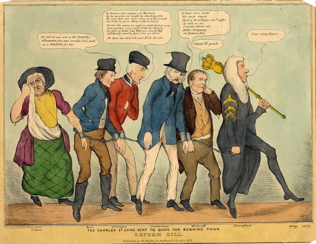 At the time, elections to Parliament were wildly undemocratic affairs: unevenly distributed seats, a franchise restricted to substantial property owners or those who could navigate weird medieval customs. Most notorious of all were the so-called rotten boroughs, tiny electorates where wealthy patrons could effectively nominate MPs.